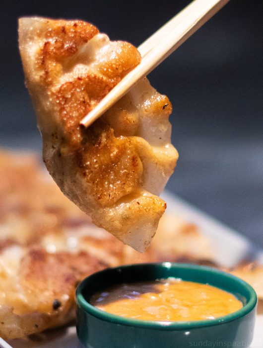 Gyozas à la viande et sauce au beurre de cacahuète