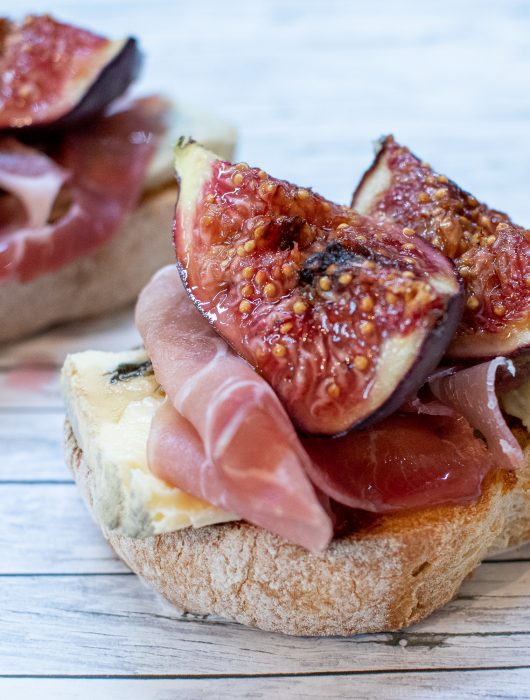 Tartines figue, jambon cru et bleu