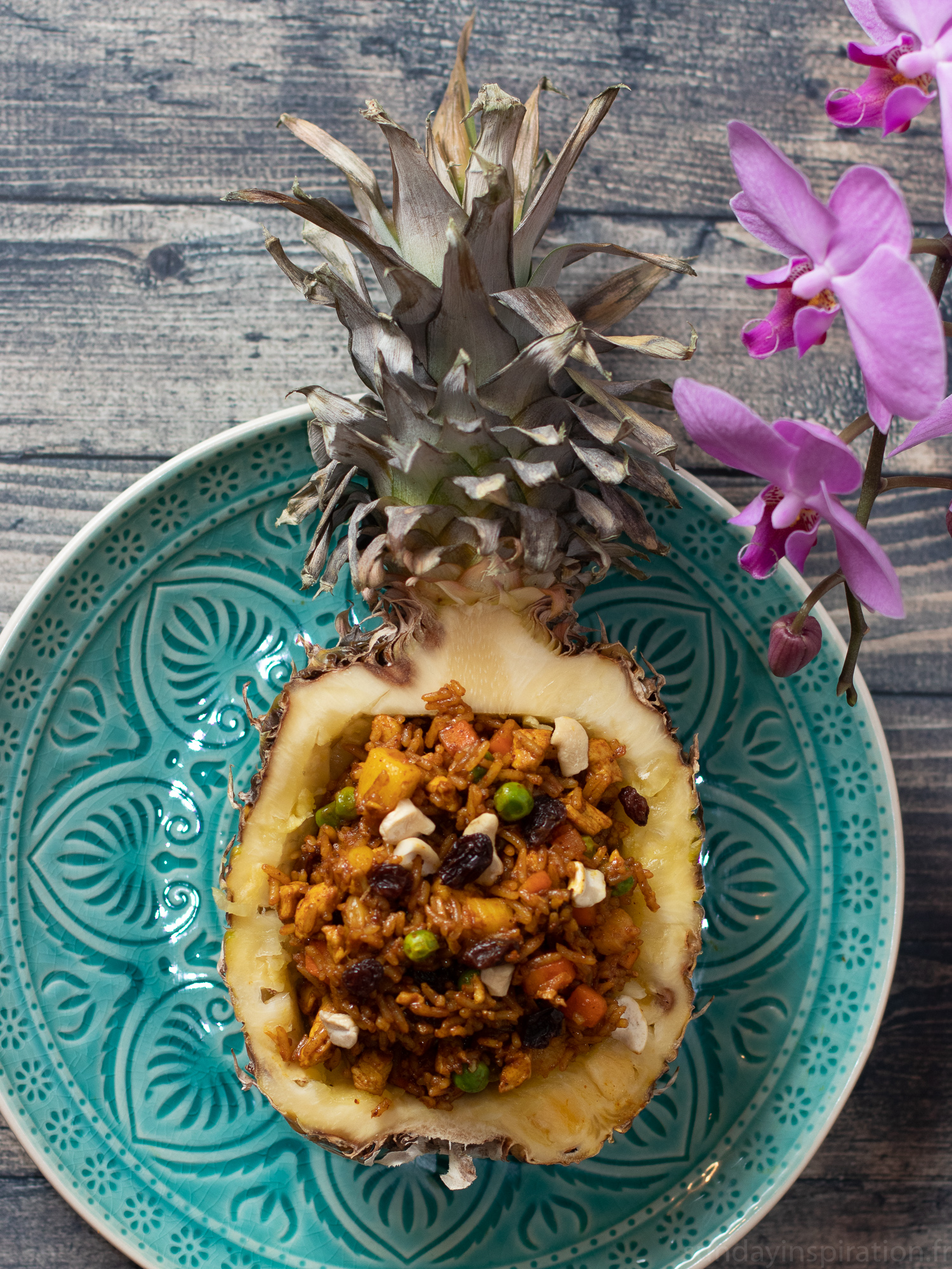 Riz frit au poulet et à l’ananas